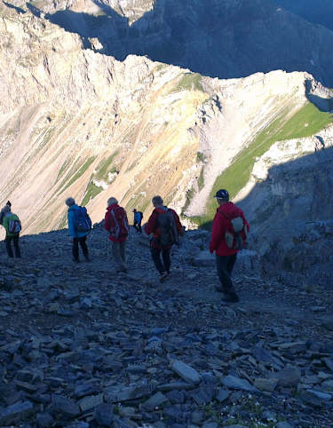Die kritischen Stellen auf dem Grat sind mit Eisenketten gesichert. Dennoch sind für diese Tour gute Kondition, Trittsicherheit und Schwindelfreiheit unbedingt erforderlich.