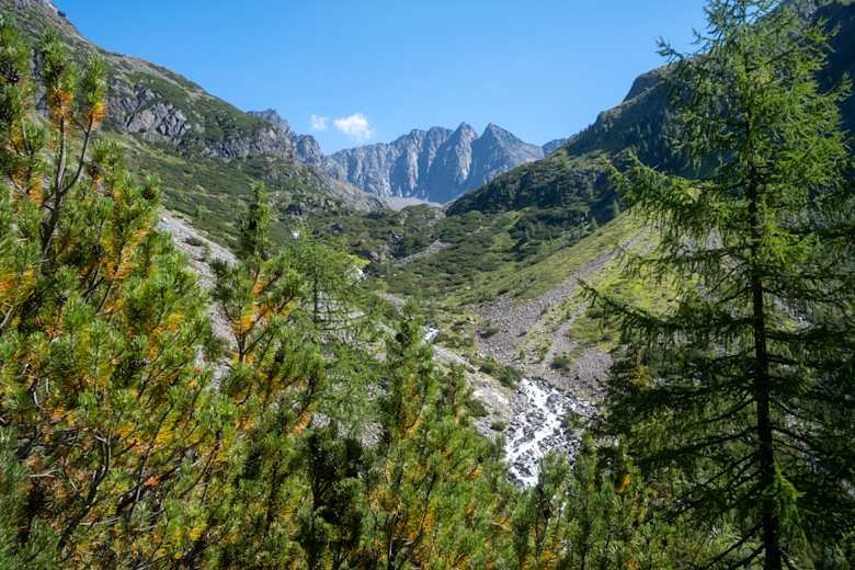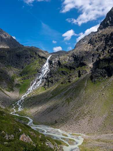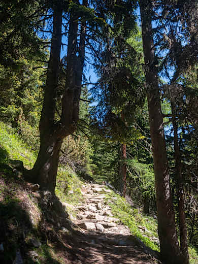 Der Anstieg beginnt direkt beim Parkplatz der Winnebachseehütte oberhalb von Gries oder im Ort Gries selbst. Anfangs noch durch Bergwald, wandert man später über die Almwiesen, quert immer wieder einige Lawinenstriche und genießt dabei bereits eine schöne Aussicht. Das letzte Stück zur Hütte ist etwas steiler, der Steig windet sich neben dem tosenden Winnebach aufwärts, ehe man schließlich die Winnebachseehütte auf 2.372 m erreicht.