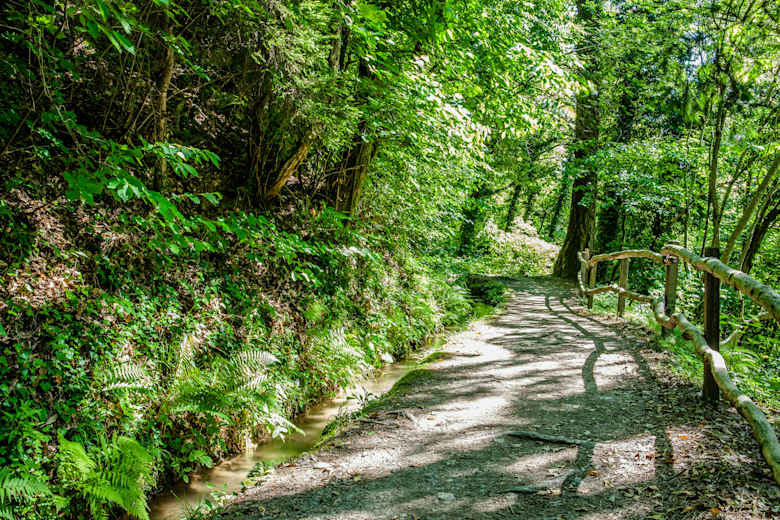 In nördlicher Richtung verläuft der Weg nahezu eben durch den schattigen Wald und führt über den Schnuggenbach zum Petaunerhof und weiter zum Riffianerweg. Auf diesem geht es schließlich zurück nach Schenna.