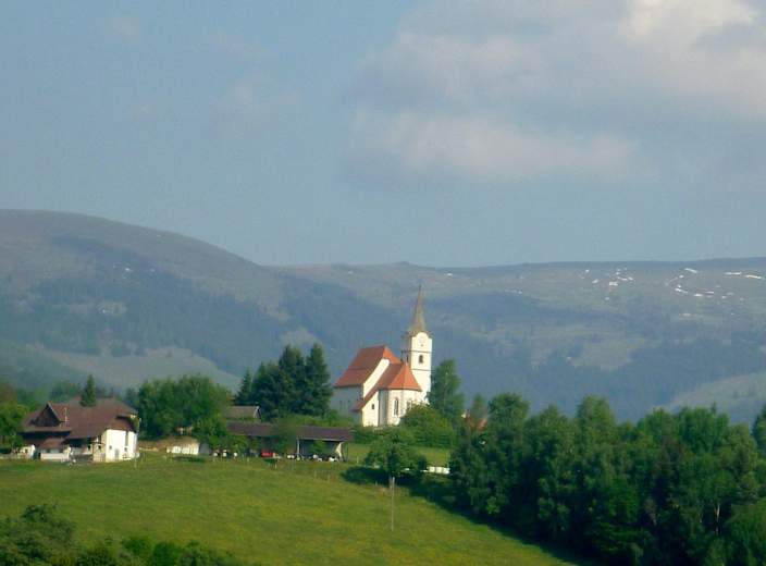 Kirche Pölling und Saualpe Foto: Erich Schober; RML Regionalmanagement Lavanttal GmbH
