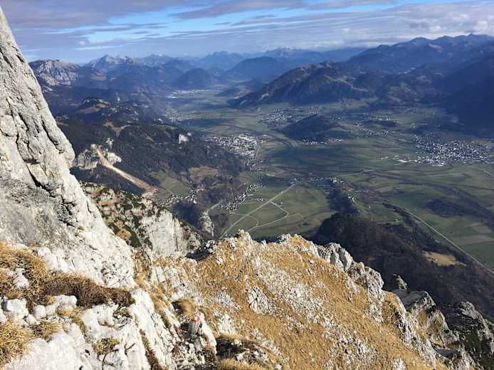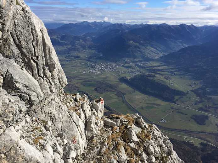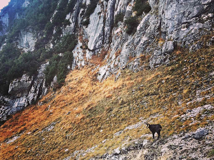 Blick zurück auf den Gipfel des Grimming am Weg zum Multereck Foto: Claudia Timm Sagenhafte Tiefblicke auf das Ennstal Foto: Claudia Timm Gams am Ende der Tour Foto: Claudia Timm Bildergalerie (9)