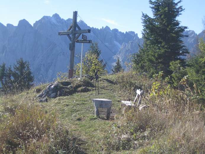 Über eine Almweise gelangt man zuerst zur verfallenen Kogelalm. Von hier aus führt ein steiler Weg zum Gipfel des Scheibenkogel, der sich als stiller, feiner Aussichtspunkt auf den Ostkaiser, den Zahmen Kaiser und sogar auf die Großglocknergruppe entpuppt.