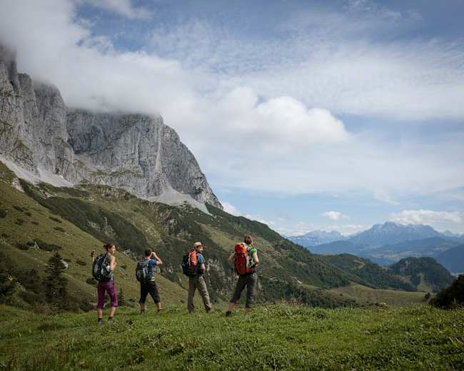Startklar für die erste Etappe des Adlerweges? Die Tour beginnt gleich grandios: durch das Naturschutzgebiet des Kaisergebirges, mit seiner abwechslungsreichen Landschaft, die durch ihre Schönheit besticht. Die Almregionen mit ihren artenreichen Wiesenmatten und die markanten Gipfel vom Wilden Kaiser verleihen dieser Etappe einen besonderen Charakter. Gipfel wie Maukspitze, Ackerlspitze, Regalpspitze und Törlspitze, die alle über 2.000 Meter hinausragen, zeichnen die Kulisse dieser faszinierenden Bergwelt. Die Tour startet am Bahnhof St. Johann.