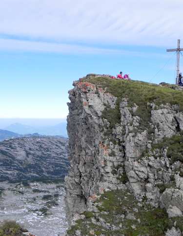 Am Großbergkopf nicht den Kopf verlieren, sondern konzentriert auf den Weg achten, denn nach dem Gipfel geht es ziemlich steil und ausgesetzt hinunter. Man könnte zum Gipfelsammeln auch einen Abstecher zu den beiden Spießrutenspitzen machen – Kletterrouten im Schwierigkeitsgrad zwischen II und IV.