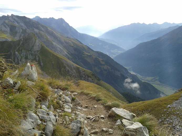 Der Abschnitt von der Leutkircher Hütte nach Kapall ist ein schmaler Steig, der durch steiles, schrofiges Gelände führt und vor allem bei Nässe die Gefahr eines Ausrutschers birgt. Trittsicherheit ist ein Muss. Aber die fleißigen Wegerhalter waren auch hier zugange: da und dort sorgen Sicherungen für Halt. Auf einem Wegabschnitt nach Bacheregg kann in einer Rinne noch bis Mitte Juli Schnee liegen.