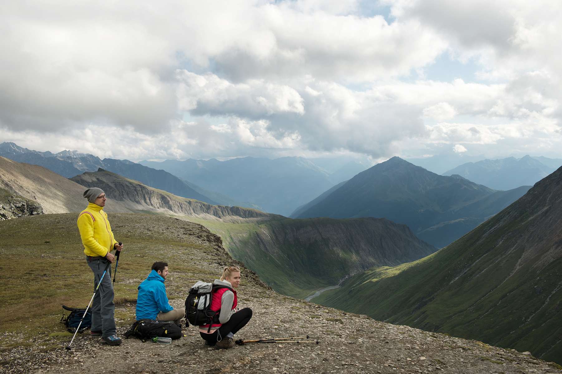 Eine Spitze reiht sich an die andere: Zollspitze, Säulspitze, Bretterspitze, Kristallspitze und Kreuzwandspitze begrüßen die Wanderer in der Glocknergruppe von der Ferne. Der Weg führt vom Kalser Tauernhaus über flache Böden und durch das liebliche Almtal mit den Dorferalmen: Schönebenalm, Bergeralm, Moaebenalm und Moaalm. Diese Tiroler Almen liegen in einer idyllischen Landschaft und zeichnen sich durch ihre intakte Landwirtschaft aus. Die urigen Hütten bieten optimale Einkehrmöglichkeiten. Bald darauf beginnt der Aufstieg in Richtung Teischnitztal, der Herrensteig führt an Figerhorn, Freiwandspitze und Fanotkogel vorbei zur Stüdlhütte am Fuß des Großglockners.