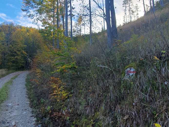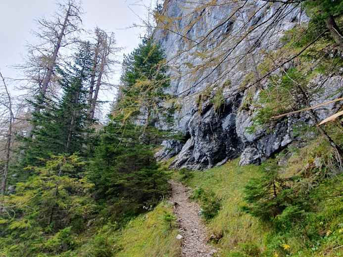 Im oberen Drittel muss man teilweise mit einem feuchten und rutschigen Weg rechnen, der zum Teil - aufgrund der wenigen Wanderer, die diesen Anstieg wählen - etwas verwachsen sein kann.
