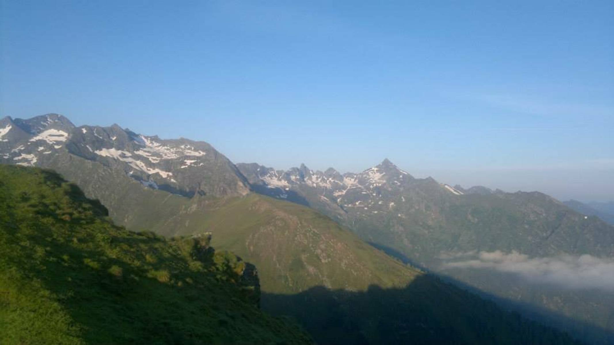 Über den sanft ansteigenden grasigen Rücken wandert man anschließend gemütlich hinauf zum Gipfelkreuz. Im Hochsommer ist das Gras von den vielen Schafen kurz getrimmt u. dazwischen bildet der üppig blühende Eisenhut schöne blaue Polster.