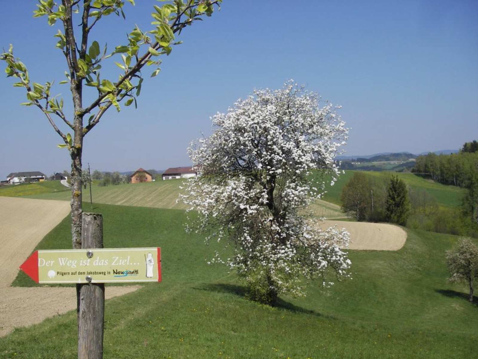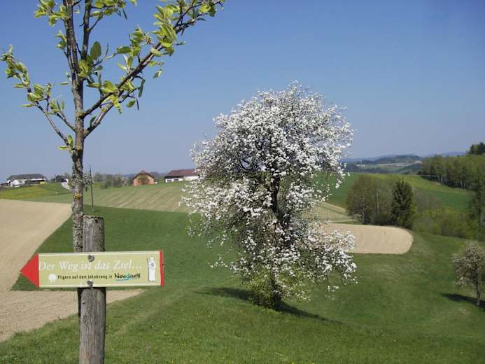 Auf der Jakobstraße (österreichischer Jakobsweg) durch den Ort, die L6033 überqueren und auf einem Wiesenweg hinunter zur L019.