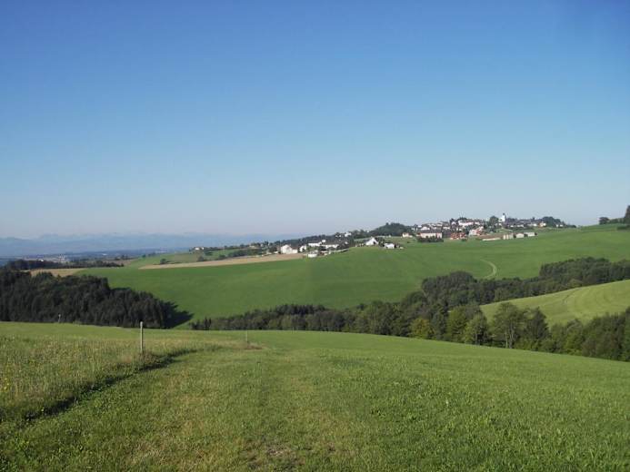 Dann am Waldrand bzw. durch den Wald hinunter zum tiefsten Punkt beim Bach. Kurz bachabwärts, dann hinaus auf freie Wiesen. Beim Gehöft in Au 14 links abbiegen und hinauf zum Nadlingerhof.
