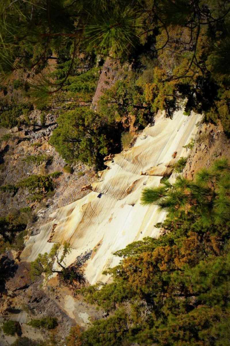 Anschließend folgt man den Weg weiter bergab bis zur Schotterstraße. Dabei sollte man sich immer auf dem Waldweg halten, da dieser angenehmer zu laufen ist. Am Hinweisschild zum Paisaje Lunar folgt man der Schotterstraße zurück zum Startpunkt.