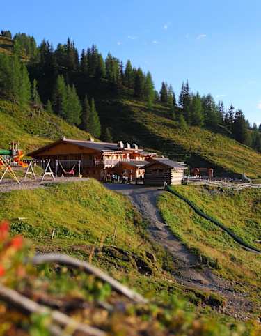 Angenehme Wanderung beim Katschberg in den Gurktaler Alpen in Kärnten: von Rennweg führt die populäre Route über die Wiesen von Frankenberg ins Laußnitztal und durch den Bergwald hinauf zur kinderfreundlichen Neuen Bonner Hütte (1.712 m).