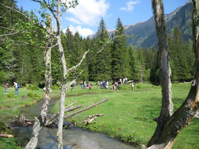 Abseits des Touristenstroms im Kärntner Pöllatal: vom Parkplatz 1 führt die gemütliche Wanderung durch den Bergwald hinauf zur Pfarrhütte in der Region Katschberg-Rennweg, von der man aus einen herrlichen Blick auf die Bergwelt der östlichen Ankogelgruppe hat.