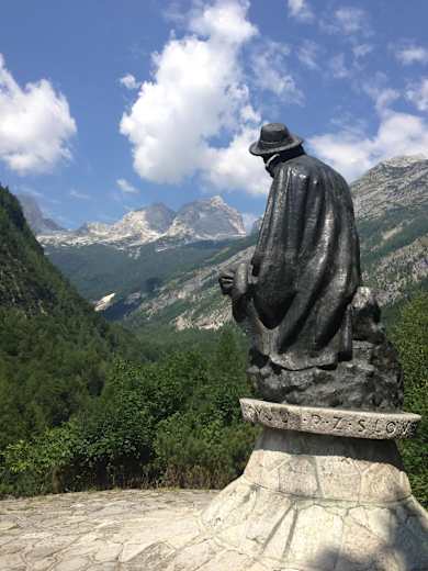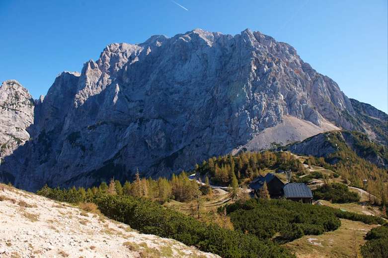 Der alte Eselpfad führt schließlich auf den 1.688 m hohen Gipfel des Vršič hinauf. Weiter geht es auf dem Pfad zur Bergstraße hinab. Man folgt der Straße ein kurzes Stück talwärts und verlässt diese etwa 200 m nach der zweiten Kehre wieder. Ein markierter Wanderweg führt ins Trentatal hinab und zum Parkplatz nahe der Sočaquelle.