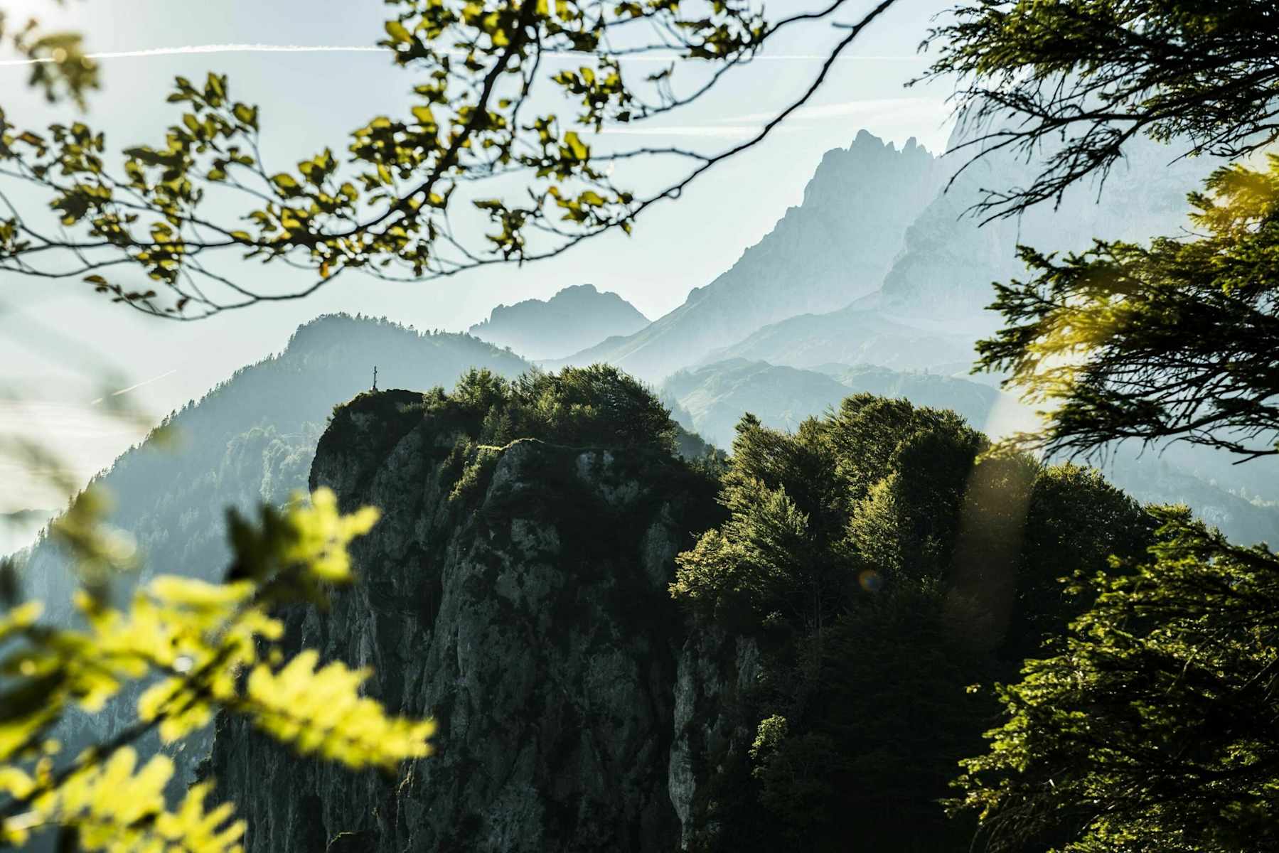 Sommerlandschaft Niederkaiserkamm mit Gipfelkreuz Foto: Kitzbüheler Alpen St. Johann in Tirol / Florian Mitterer