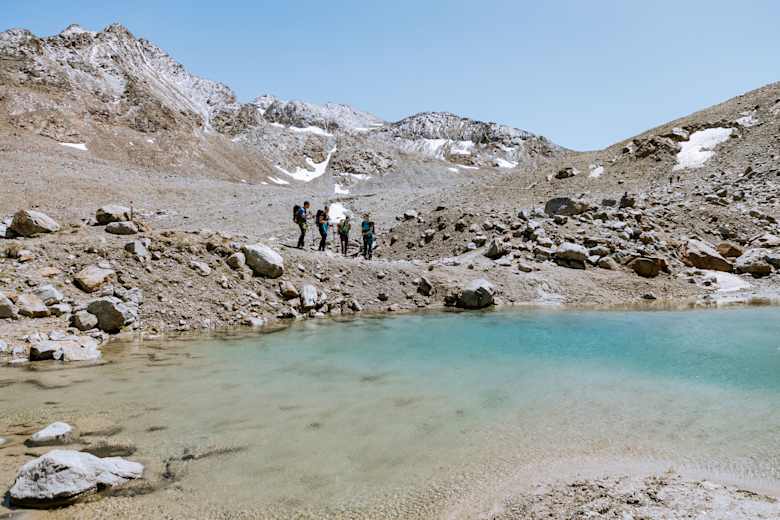 Von der Ötzi-Fundstelle steigt man über den Weg 2A wieder ab. Die Similaun Hütte bietet sich als Übernachtungsstützpunkt an.