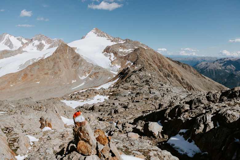 Abstieg von der Ötzi-Fundstelle zur Similaunhütte mit dem Similaun im Blick Foto: Annika Manthey Bildergalerie (8)