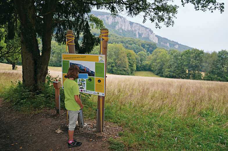 Die Tour verläuft durch alle Zonen der Bergwelt, über Wiesen aber auch teilweise über Stock und Stein bis zu den Kletterwänden des Peilsteins – den natürlichen und den künstlichen. Der Weg zurück zum Ausgangspunkt führt schnell bergab und informiert noch an einigen Stationen über verschiedene Themen rund ums Klettern.