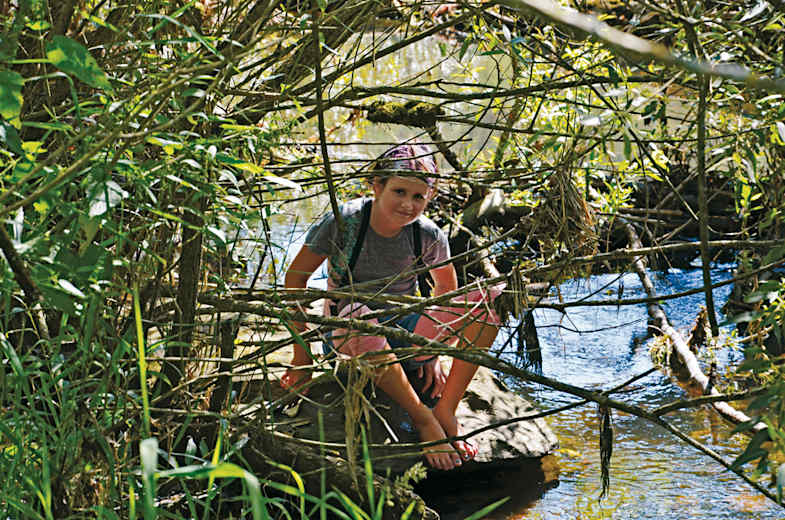 Entlang der Strecke kann man elf verstecke Wildkatzensilhouetten aufspüren. An der Thaya gibt es einen Schleichparcours, Spielmöglichkeiten und im Nationalparkhaus gibt es ein Wildkatzengehege, das auch Schaufütterungen anbietet.