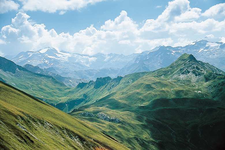 Vom Haselloch rechts ein letztes kleines Stück bergauf, dann weitgehend eben über wunderbare Almböden Richtung Franz-Fischer-Hütte (2.020 m). Auf der gegenüberliegenden Talseite das mächtige Weißeck, im Westen die Hohen Tauern mit Hafner- und Ankogelgruppe.