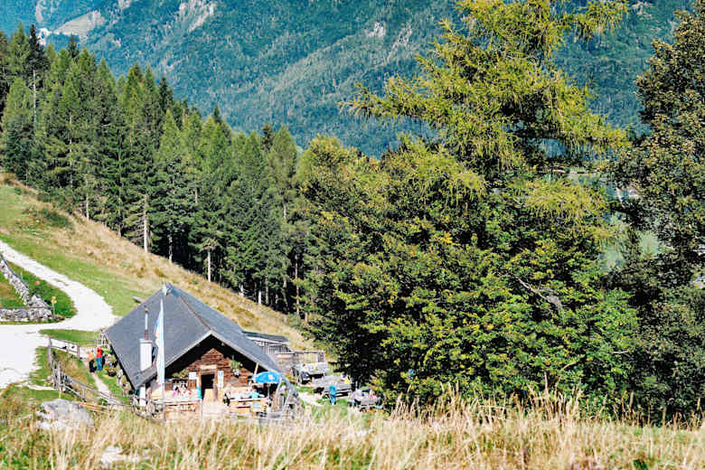 Für den Abstieg folgt man ein Stück dem Arnoweg bis zur Arnikahütte, wo man rechts auf einen Steig abzweigt. Diesem folgt man bis zum Forstweg, wo man rechts weiter abwärts wieder direkt zur Bartlhütte bzw. zur Saugsteigalm kommt.