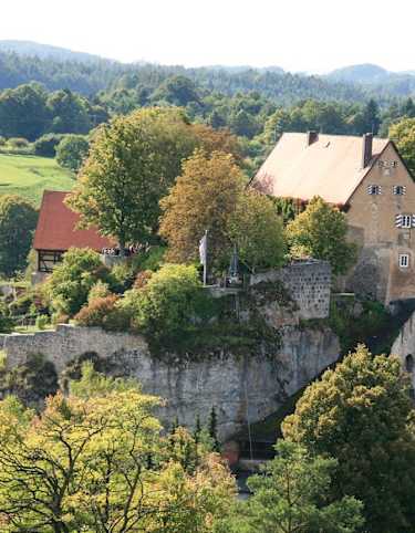 Auf der A9 von Nürnberg bis nach Pegnitz, dann Richtung Nordwesten auf der B470 bis nach Gößweinstein.