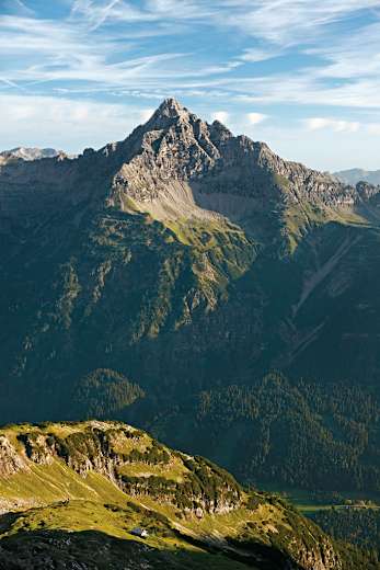 Dominant erhebt sich der Hochvogel über dem Hornbachtal. Unten ist klein das Kaufbeurer Haus zu erkennen.Foto: Mark Zahel