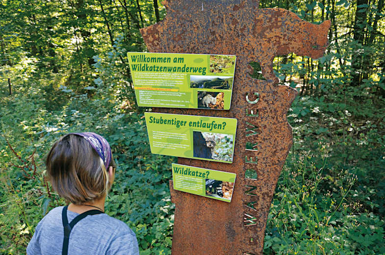 Entlang der Strecke kann man elf verstecke Wildkatzensilhouetten aufspüren. An der Thaya gibt es einen Schleichparcours, Spielmöglichkeiten und im Nationalparkhaus gibt es ein Wildkatzengehege, das auch Schaufütterungen anbietet.