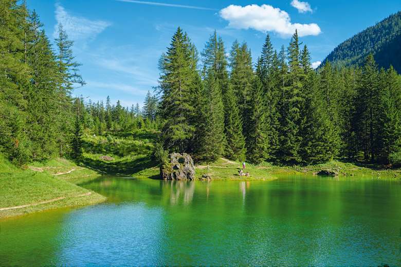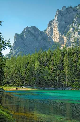 Fotopirsch zum schönsten Platz Österreichs: Ein Highlight der Hochschwabgruppe ist der Grüne See bei Tragöß, in dem sich die Wände der Pribitz, des Trenchtling und der Messnerin so prächtig spiegeln. Von unterirdischen Schmelzwässern gespeist, ist es ein „lebender“ See, dessen Wasserstand und Färbung je nach Jahreszeit wechselt.
