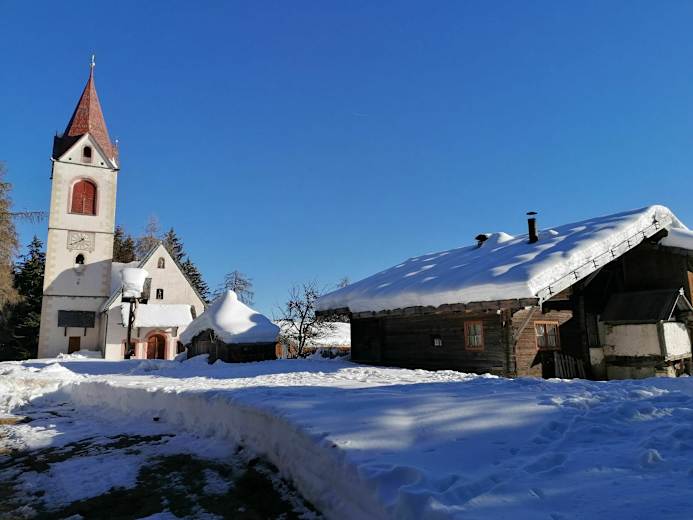 Das „Häusl am Stoan“ gehört wohl zu den kuriosesten Bauwerken ganz Südtirols, das unterhalb von St. Pankraz am Falschauerbach steht. 1882 führte der reißende Wildbach nach einem Unwetter starkes Hochwasser und die Flut riss die umliegenden Gebäude mit sich – mit Ausnahme eines einzigen, das durch Zufall auf einem riesigen Felsblock errichtet worden war und erst nach der Flut sichtbar wurde. Bis heute steht das „Häusl am Stein“ auf dem Felsen und trotzt den Zeiten.