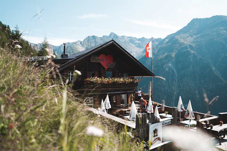 Entlang der Strecke, die im verkehrsberuhigten Hochsölden startet, bietet sich Maria's Alm als Etappenziel zur Einkehr an. Sie gehört mit ihrer Sonnenterrasse und einem herrlichen Panoramablick zu einer der beliebtesten Hütten in Sölden.