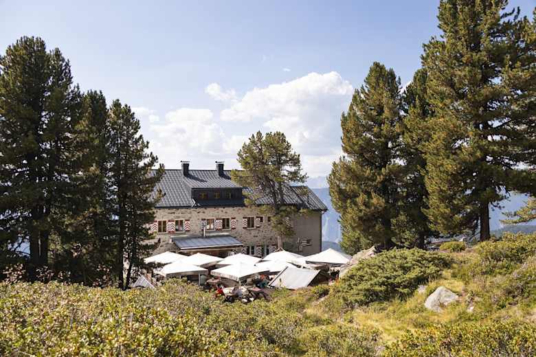 Die Bielefelder Hütte, das Etappenziel, thront auf 2.112 Metern hoch über Hochoetz. Ihre Sonnenterasse bietet Wanderern eine atemberaubende Aussicht auf die Stubaier, Ötztaler und Lechtaler Alpen. Hier kann man auch Übernachten, da die Hütte rund 60 Schlafplätze anbietet. Viele weitere interessante Wanderungen haben hier ihren Ausgangspunkt.