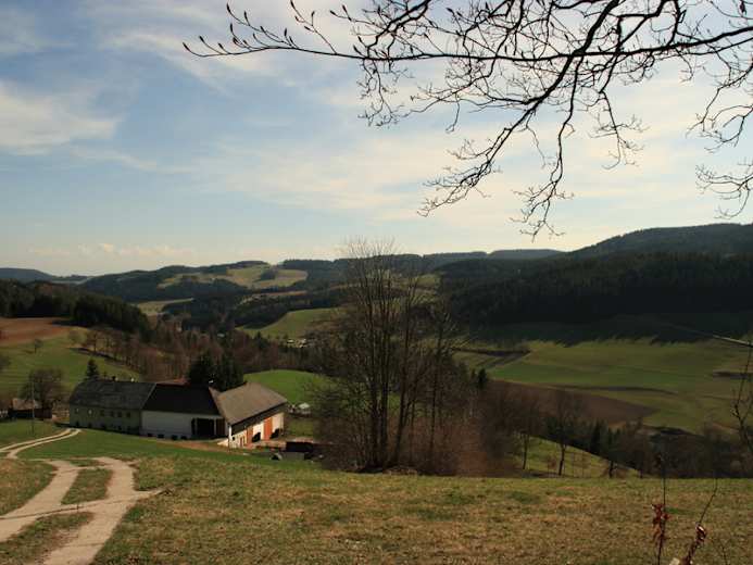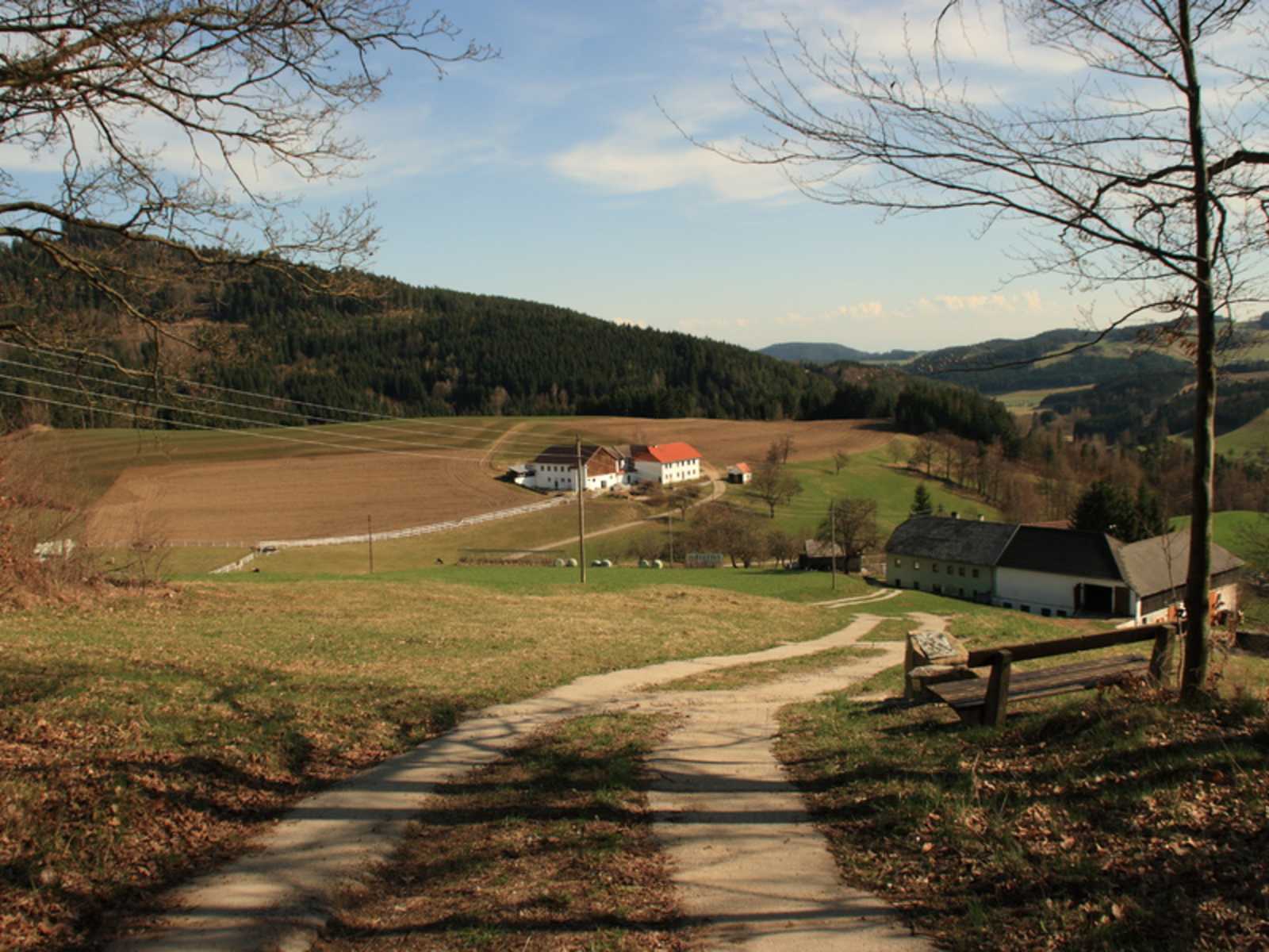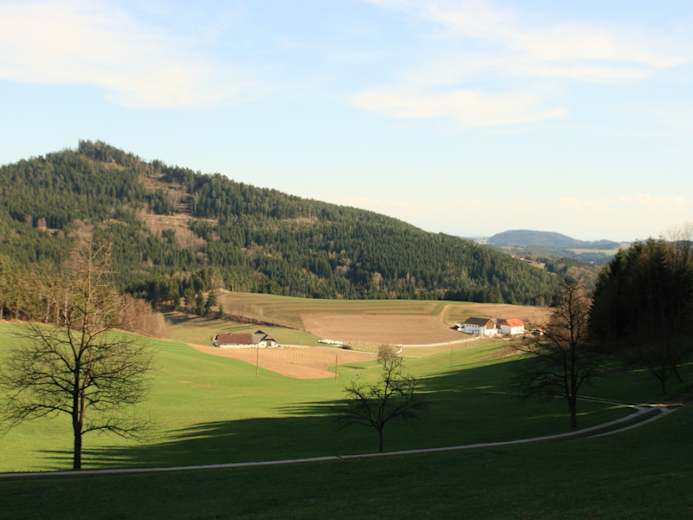 Dort angekommen geht die Tour zuerst rechts zum Reitersederhof nach Berg weiter und anschließend linker Hand zum „Seidl-Hof". Dann folgt man rechts dem Tröbingerbach Bach bis zum Raidlhaus (Möglichkeit auf einer nicht markierten Forststraße den Zeisberg auf 802 m Seehöhe zu begehen).