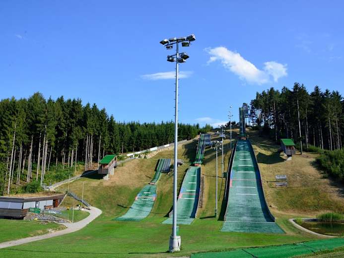 ADRENALIN-KICK: Bereits beim Erklimmen des 25 Meter hohen Turms der Erlebnisschanze Ski-Flyer verspürt man eine erhöhte Herzfrequenz. Oben angekommen heißt’s: Helm auf, Ski an, Gurt sichern und bitte platznehmen am sogenannten „Zitterbalken“. Der Puls rast, das Adrenalin schießt durch die Adern und jetzt kommt das Kommando: drei, zwei, eins, ab! Zisch - und man fliegt 200 Meter gesichert am Stahlseil dem Ziel entgegen (www.erlebnisschanze.at, Tel. 0650 / 895 77 13)