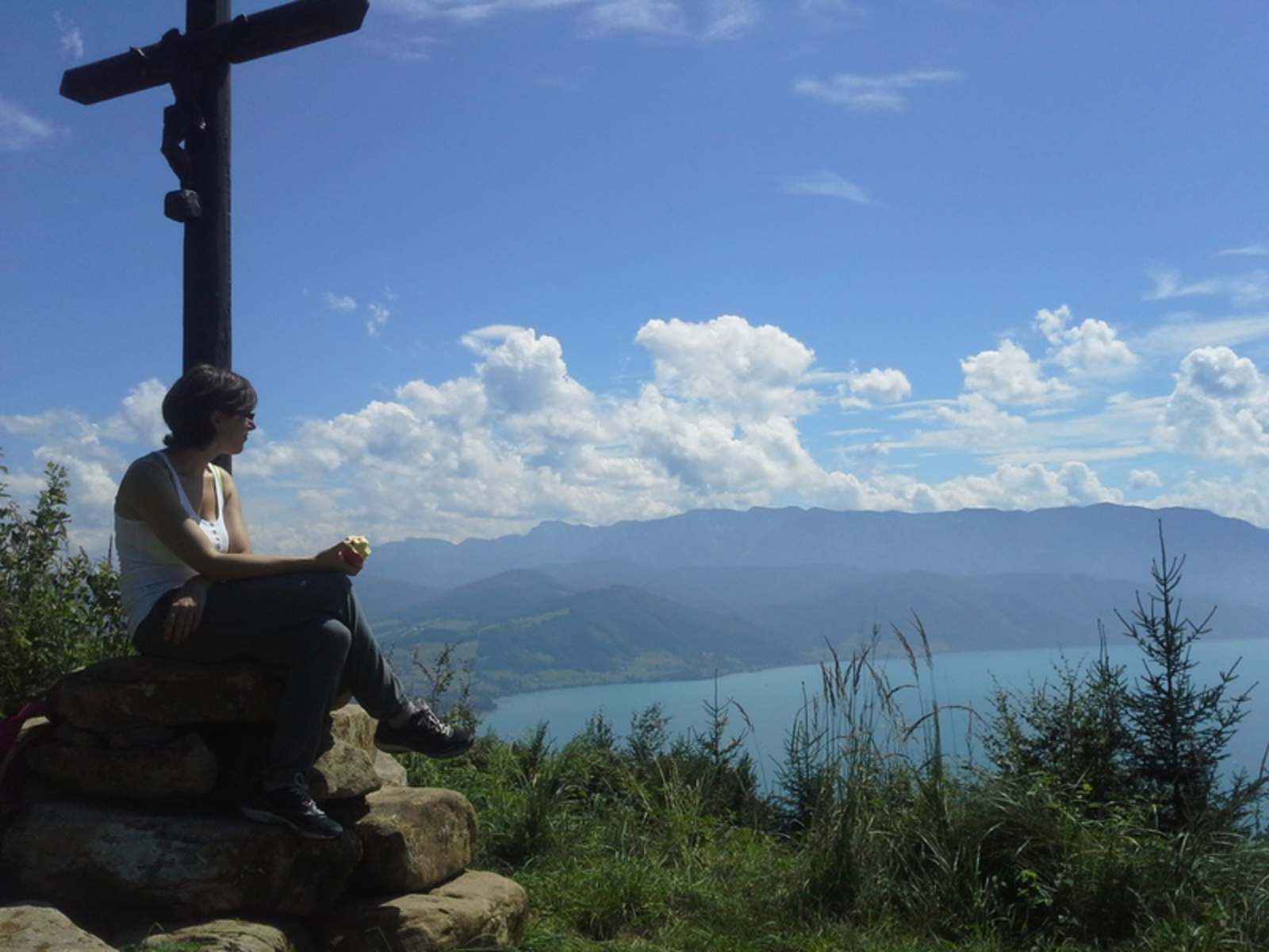 Buchberg kann man ebenfalls vom Attersee erreichen. Lohnenswert ist nicht zu vergessen, eine gute Jause einzupacken um den Ausblick von der Unterstandhütte Jägerstüberl mit Proviant genießen zu können.