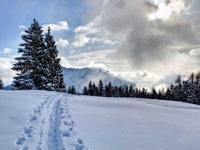 Am Rückweg kann man einen einmaligen Blick auf das Gebirgspanorama des Bosrucks genießen.
