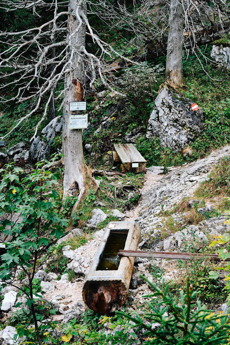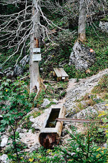 Brunnen und Rastbank im Wald am Weg zum Hochleckenhaus Foto: Armin Walcher / Red Bull Media House Publishing