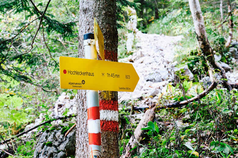 Der Wegweiser weist den richtigen Weg zum Hochleckenhaus. Foto: Armin Walcher / Red Bull Media House Publishing