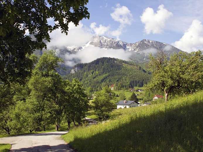 Hier gehen Sie zuerst links, dann rechts und vor dem Bauernhof den Wiesenweg links entlang. Folgen Sie hier den Weg am Rande des Stummerkogels und genießen die tolle Aussicht.Wieder bei einer Straße angekommen folgen Sie dieser gerade aus, zuerst einer Rechtskurve, einer Linkskehre, dann einer Rechtskehre und wieder einer Linkskehre.Bei einem Wald, wo die Straße nach Links führt gehen Sie gerade aus und wandern rechts vom Wald entlang. Nun folgen Sie der Straße immer weiter und gelangen direkt zurück zum Ausgangspunkt in Roßleithen.