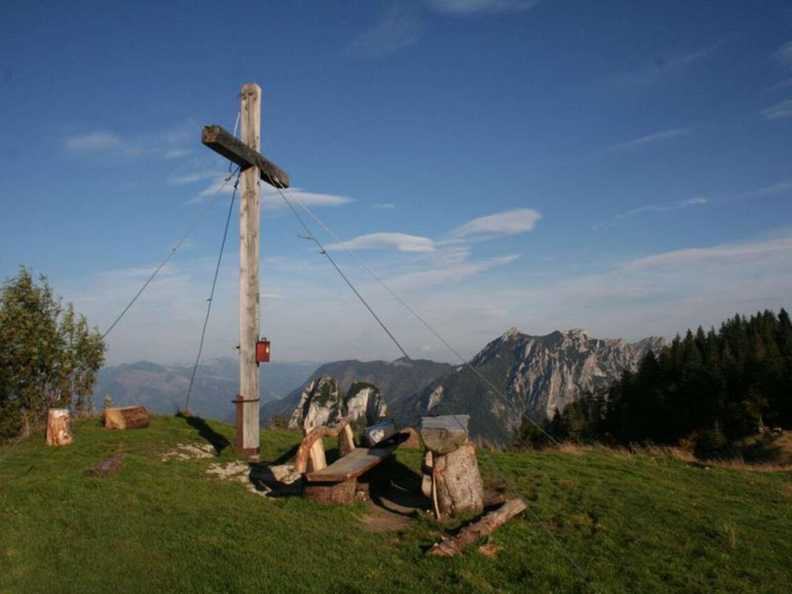Nun links bis zum Gipfelkreuz aufsteigen und die herrliche Aussicht genießen.