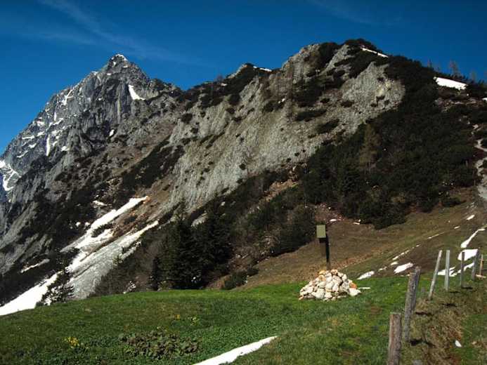 Ab der Fuchsalm steigt der Wanderweg-Nummer 610 durch den Wald und über steile Almwiesen in Serpentinen auf bis zum Lahnerkogel (Gipfelkreuz 1.854 m) - Gehzeit ca. 2:30 h. Ab diesem Punkt beginnt die Gratwanderung über den Kitzstein (Gipfelkreuz 1.925 m) zum Bosruckgipfel.