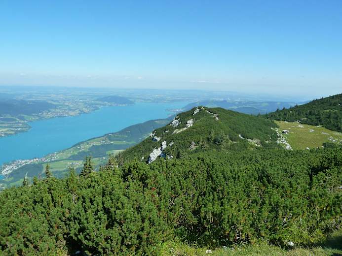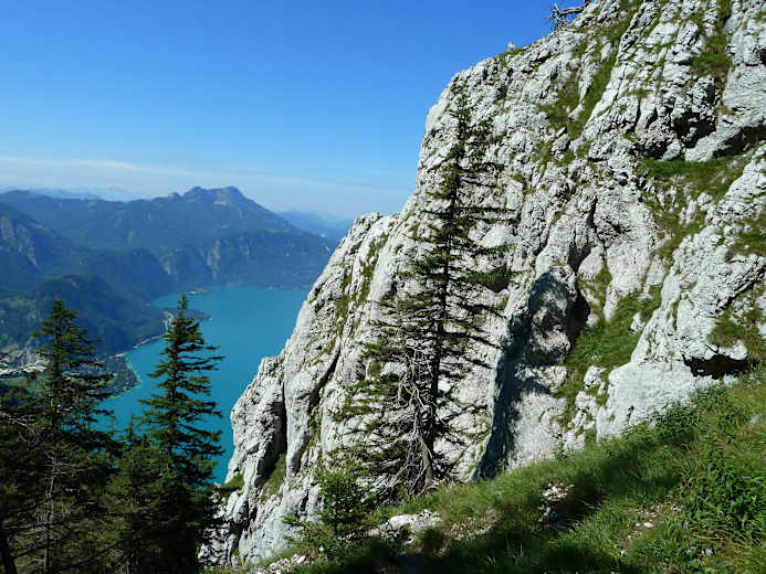 Vom Forstamt ausgehend führt der Weg zunächst durch den Wald und dann weiter über eine kurze Eisenleiter zum „Steinbachblick“ hinauf. Steiler Anstieg über den Brennerriesensteig auf das Höllengebirge - nur für geübte Wanderer zu empfehlen. Dort hat man einen traumhaften Ausblick.