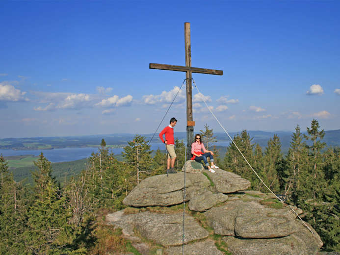 Die leichte Wanderung bei Aigen-Schlägl im oberösterreichischen Mühlviertel mit höchstem Punkt auf 1.069 m bietet bezaubernde Ausblicke. Etwa der Rundblick auf dem Bärenstein über den südböhmischen Moldaustausee und das gesamte Böhmerwaldgebiet.