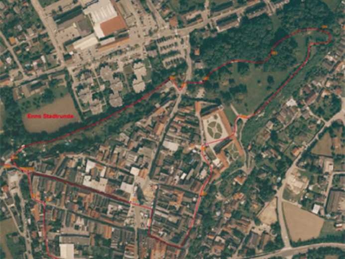Feiner kurzer Stadtrundwanderweg durch Enns, die älteste Stadt Österreichs: Vom berühmten Stadtturm der oberösterreichischen Gemeinde geht es auf eine Entdeckungsreise der kulturellen Schätze in der Umgebung, u.a. kommt man dabei an Schloss Ensegg vorbei.