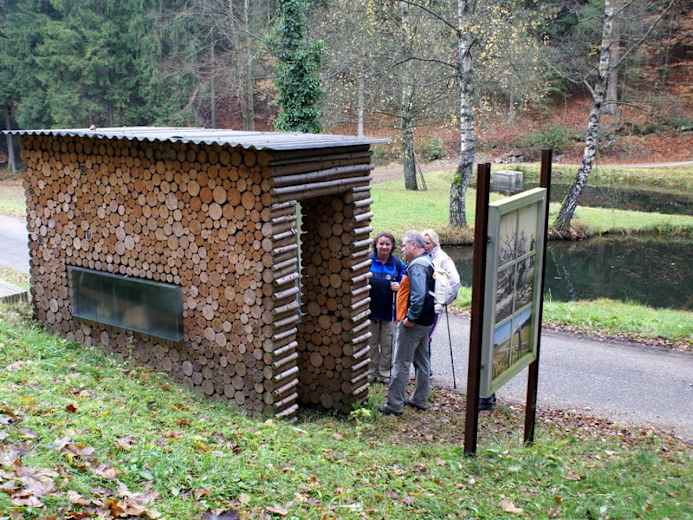 Entstanden ist ein abwechslungsreicher Rundweg, der mit alten Fotos der Sarleinsbacher Bevölkerung den Alltag vergangener Tage zurückbringt. Besinnlich und oft auch vergnüglich ist das Innehalten bei den einzelnen Stationen. Immer wieder wurden auch bei unserer Wanderung Erinnerungen an die eigene Kindheit und Jugend geweckt.Ausgangspunkt des bestens beschilderten Weges ist der Parkplatz beim Kräuterhof Mandl am Ende des Ortes. Kindheit heißt die erste Station direkt bei der Schule und bald darauf ist man unterwegs in der hügeligen Landschaft zwischen Donautal und Böhmerwald. Ein schöner erster Rastplatz liegt bei der Chagerkapelle mit seiner Heilquelle, eines der zahlreichen Augenbründl des Mühlviertels.