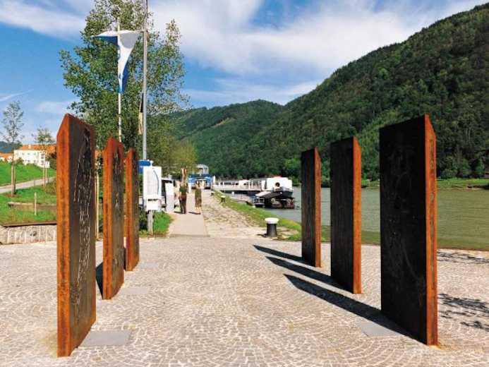 Weiter geht's hinunter zur Donau und auf dem Donau-Weg zu den „Donau-Ateliers" heimischer Künstler. Imposant ist die Turbine des „Donau-Platzes" und interessant die Ausstellung im „Donau-Schiff". Oberhalb des Platzes befinden sich der Erlebnisspielplatz „Donau-Spiel" und die Ausstellung „Donau-Geschichten". Vorbei am Hochwasserbaum und dem Überfuhrhäusl führt ein Pfad an der Donau zum Fallauerbach, zur „Nassen Staatsgrenze", weiter zum römischen Meilenstein und zum Donaukraftwerk Jochenstein. Wer will, macht einen Abstecher auf die deutsche Seite zum Haus am „Srom".Danach geht's auf österreichischer Seite hinauf zur „Jausenstation Bernhard" und weiter entlang eines Waldpfade zurück nach Engelhartszell.