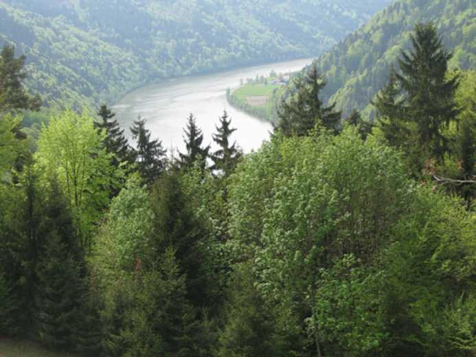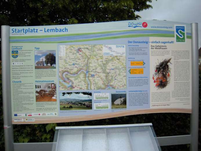 Gemütliche, flache Wanderung von Lembach im Mühlkreis in Oberösterreich zum nördlichen Donauufer auf dem sogenannten „Leinenweberweg". Der Donausteigrundweg bietet schöne Aussichtspunkte in Edt (Blick zur Donau), Grain (Blick nach Niederkappel und Kirchberg) und auf den Mühlholzberg (Blick zum Böhmerwald).