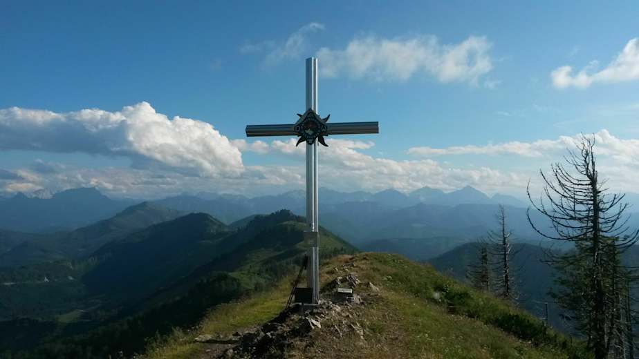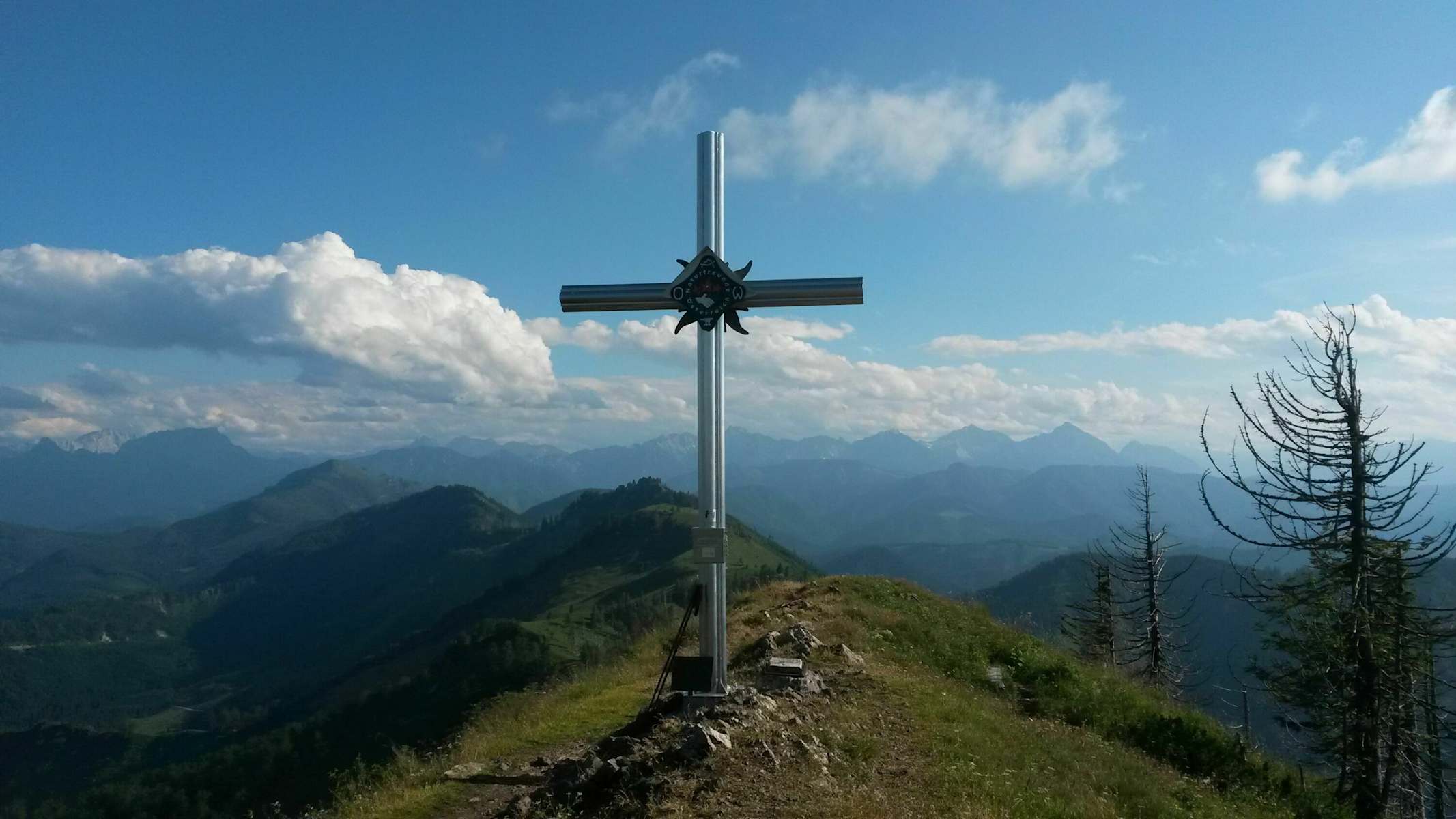 Den Gipfel am Almkogel (1.513 m) erreicht man dann in 45 Minuten. Eine herrliche Aussicht über den Nationalpark Kalkalpen und die umliegende Bergwelt belohnen für den Aufstieg.