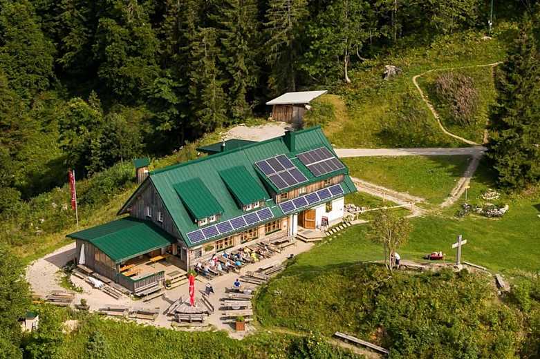 Man kann auch mit dem Auto bis zum Parkplatz Bamacher fahren und steigt von dort nur noch etwa 1:00 h bis zur Ennser Hütte auf.