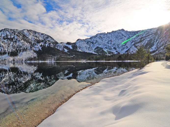 Der Offensee im Salzkammergut ist ein kleines Naturjuwel am Fuß des Toten Gebirges. Die Strecke rund um den See kann man wandernd, mit Nordic-Walking-Stöcken oder laufend zurücklegen.